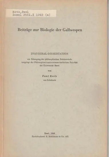 Titel: Beiträge zur Biologie der Gallwespen. Dissertation an der Universität Basel, 1949. - Separatabdruck aus den Verhandlungen der Naturforschenden Gesellschaft in Basel, Band LX, 1949