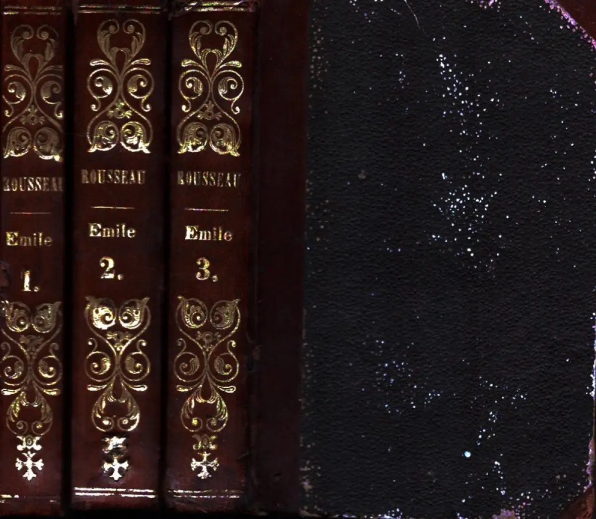 Paris, Hector Bossange, 1828, 275, 402, 326 S. (= Oeuvres de J. Jacq. Rousseau). 12,5 cm. OHLdr mit Golddekor.
