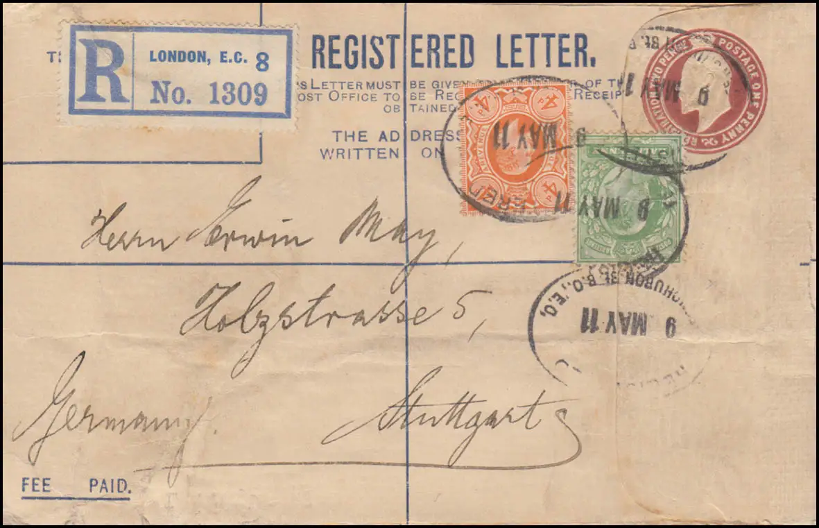 Royaume-Uni Enveloppe d'inscription UE 26 Supplément LONDON 9.5.11 à Stuttgart