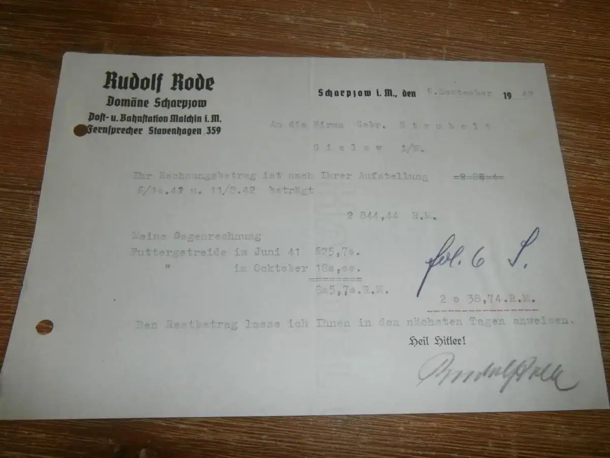 Rudolf Rode - Domäne Scharpzow i. Mecklenburg , 1942 , Stavenhagen , Malchin , altes Dokument !!!AZ-K/2