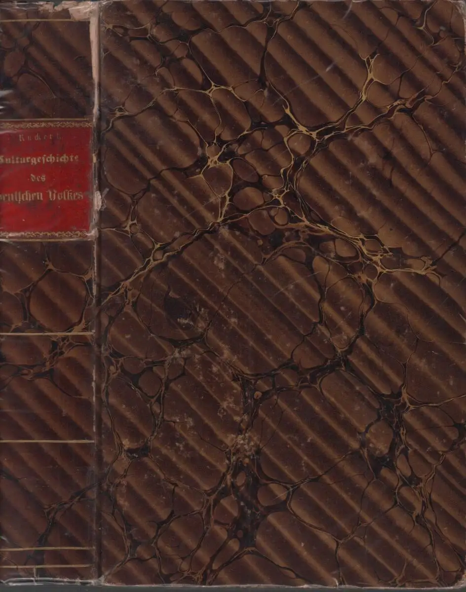 Kap. u. Ecken bestoßen, stellenw. braunfleckig, stellenw. Bleistiftanmerk. - Die Aufgabe dieses Werks ist, den Untergang des nationalen Heidenthums u. die Verbreitung des Christenthums unter den deutschen Stämmen bis zu seinem wenigstens äußerlich vollständigen Siege darzustellen. Es soll der Versuch gemacht werden, gestützt auf historische Thatsachen, den Umschwung in dem Geistesleben des deutschen Volkes, namentlich in der religiösen Seite desselben, der das Eindringen des Christenthums ermöglichte, im wahren Sinne genetisch nachzuweisen (Vorwort zu Tl. 1). - Heinrich Rückert (1823-1875), Sohn des Dichters Friedrich Rückert, Historiker u. Germanist, war Professor in Breslau (Zischka, Allg. Gelehrten-Lex., S. 556)