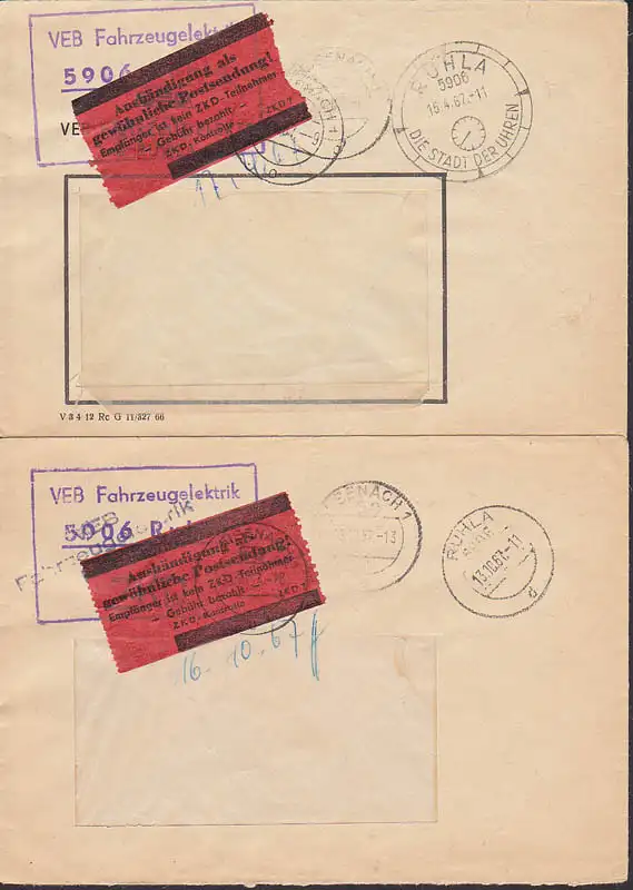 Ruhla R3 ZKD-Stpl. VEB Fahrzeugelektrik mit rotem ZKD 7 -Pergamninzettel, SSt. Ruhla Uhren