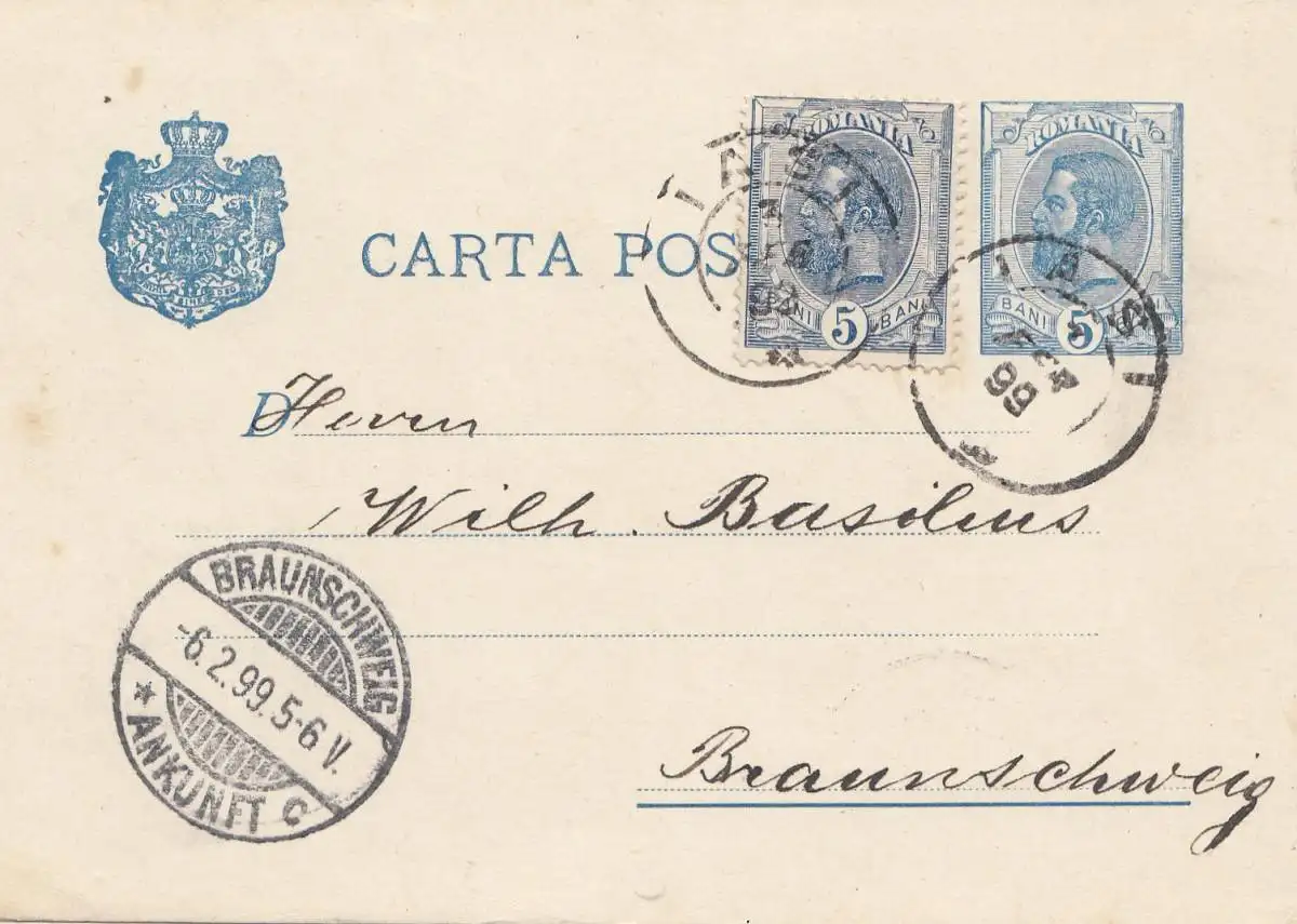 Roumanie: 1899: Iasi vers Braunschweig