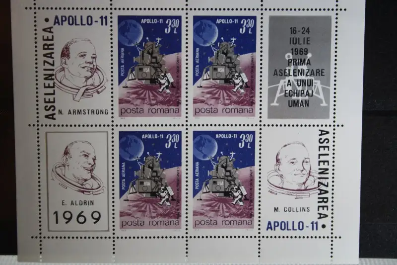 Rumänien, Raumfahrt, 1969, Apollo-11, Kleinbogen mit Zf