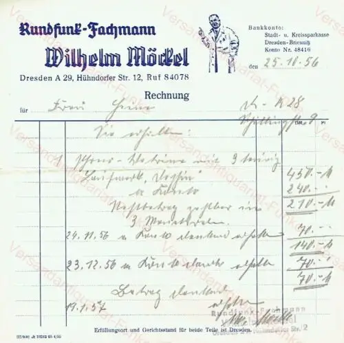 Rundfunk-Fachmann Wilhelm Möckel, Dresden Rechnung.