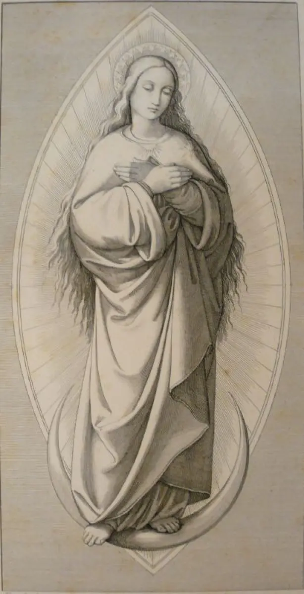 Ruscheweyh, Ferdinand (1785 - Neustrelitz - 1846),, Maria: Pulchra ut luna, electa ut sol. Radierung nach Bartholomäus Steinle