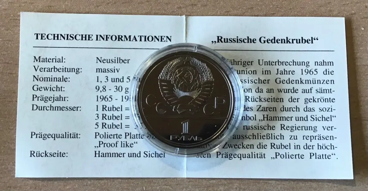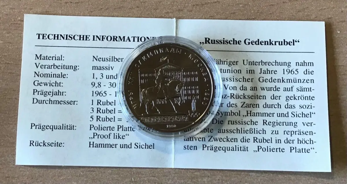 Original Russland 1 Rubel 1980 Reiterdenkmal Gründer Moskau Proof Like mit Zertifikat