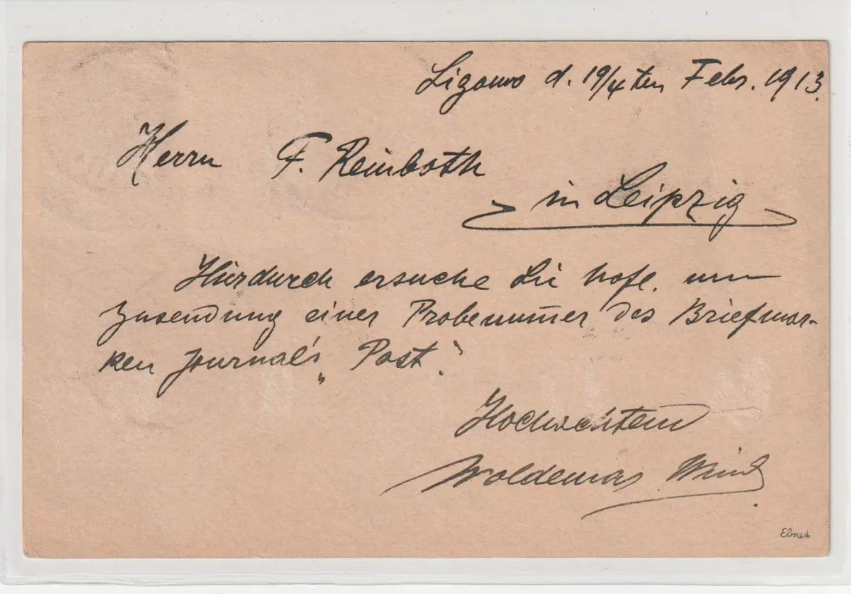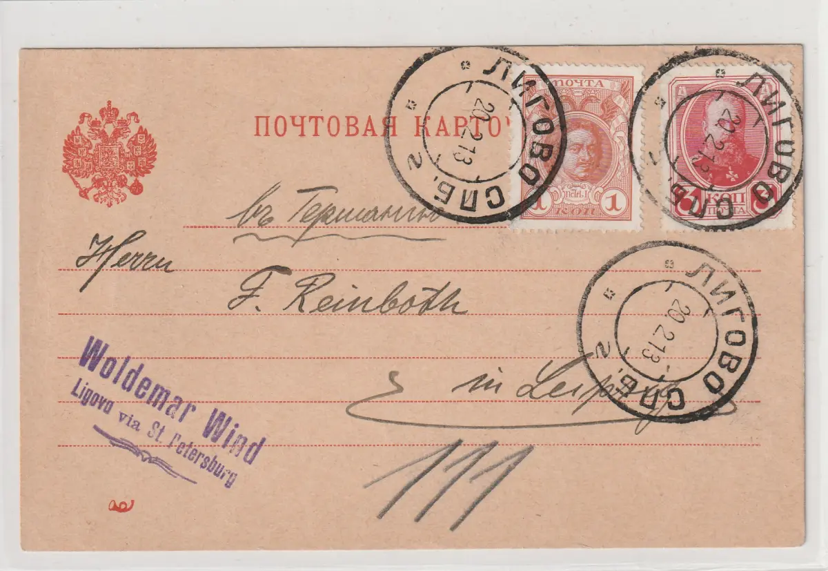 Russland: Karte von Ligowo nach Leipzig 1913, geprüft