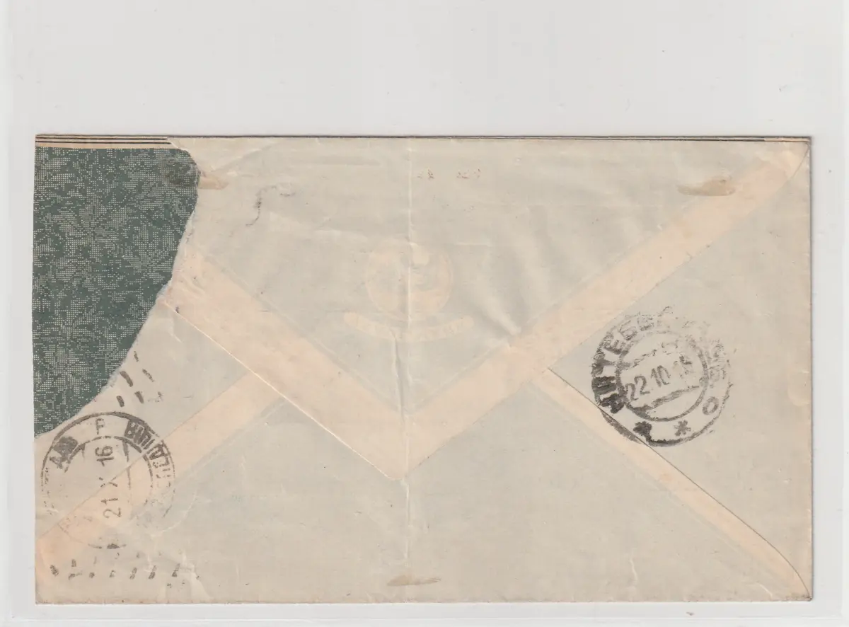 Brief mit Beförderungs- und Altersspuren. Rückseitig größere Fehlstelle in der Verschlussklappe.