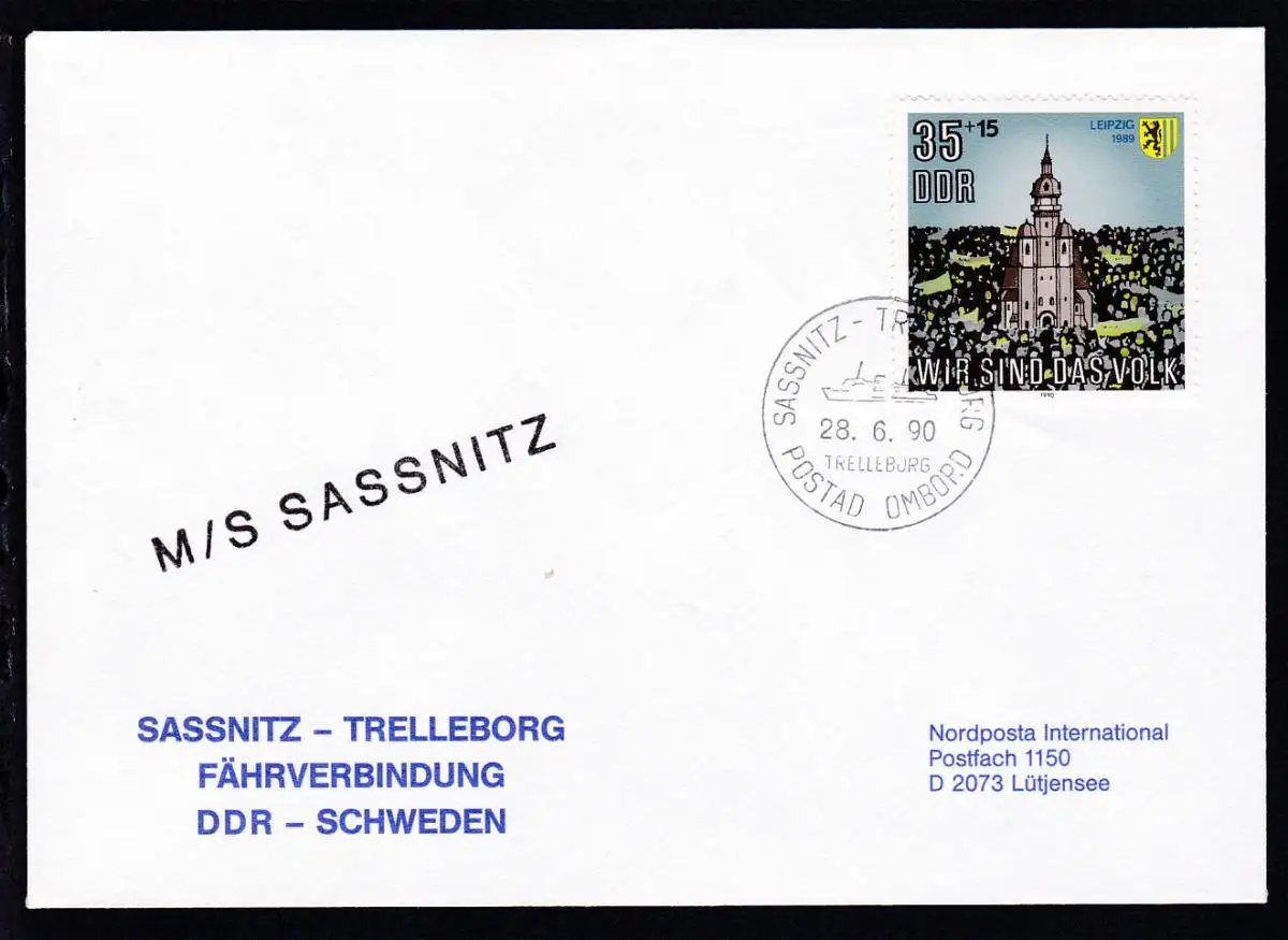 SASSNITZ-TRELLEBORG TRELLEBORG POSTAD OMBORD 28.6.90 + L1 M/S SASSNITZ