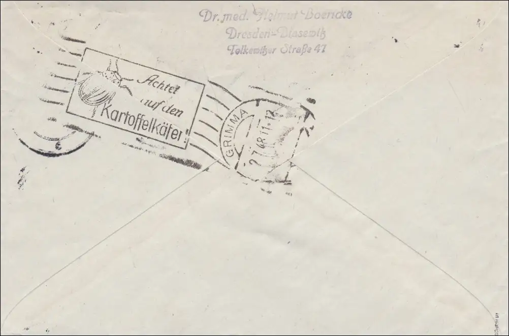 SBZ: Lettre recommandé de Dresde vers Grimma 1948 - Tampon à main