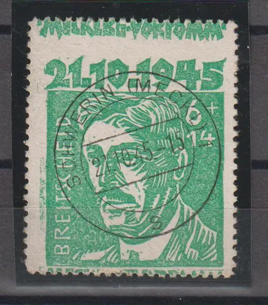 SBZ, MVP, 6 Pfg. OdF, gestempelt, stark verzähnt (Landesbez. oben), geprüft