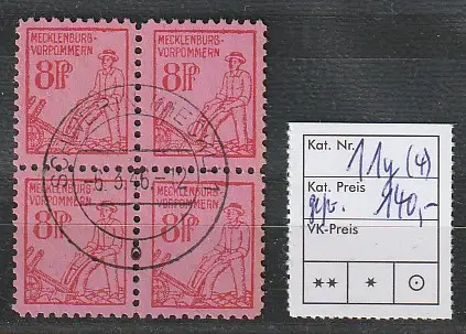 SBZ, MVP, Mi.-Nr. 11y im Viererblock, gestempelt, geprüft Kramp