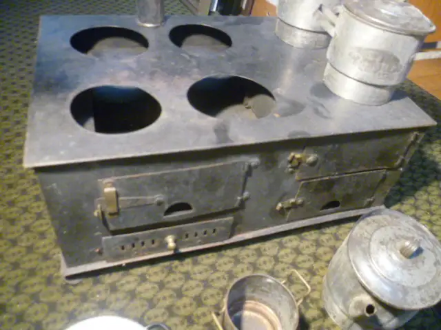 SCHÖNER ALTER, JUGENDSTIL PUPPENHERD/KINDERHERD ODER FÜR GROßE PUPPENSTUBEN/PUPPENKÜCHE ODER EINZELSTÜCK/DEKO