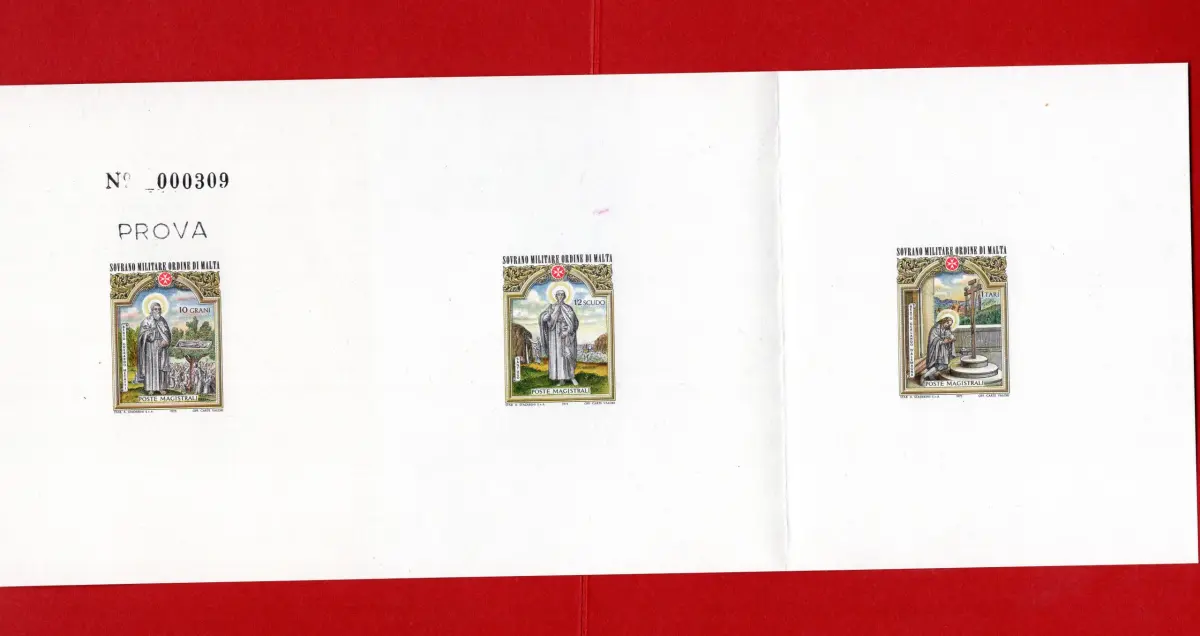 Ohne Gummi - SMOM - Weihnachten '73 Nr. 91/93 Proof-Serie auf weißem Papier ohne Wasserzeichen Euro-Katalog Cod.1817/WEB