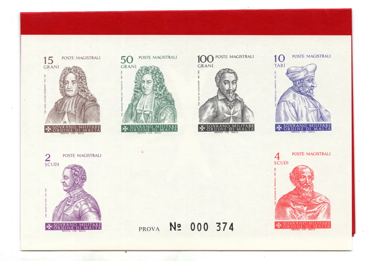 Ohne Gummi - SMOM - Großmeister Nr. 187/192 Druckprobebogen weißes Papier ohne Wasserzeichen Cod.1843/WEB