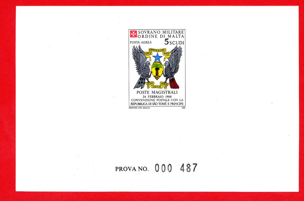 Ohne Gummi - SMOM - Abkommen mit St. Tomé und Principe Luftpost Nr. 38 Druckprobebogen auf weißem Papier ohne Wasserzeichen Cod.1898/WEB