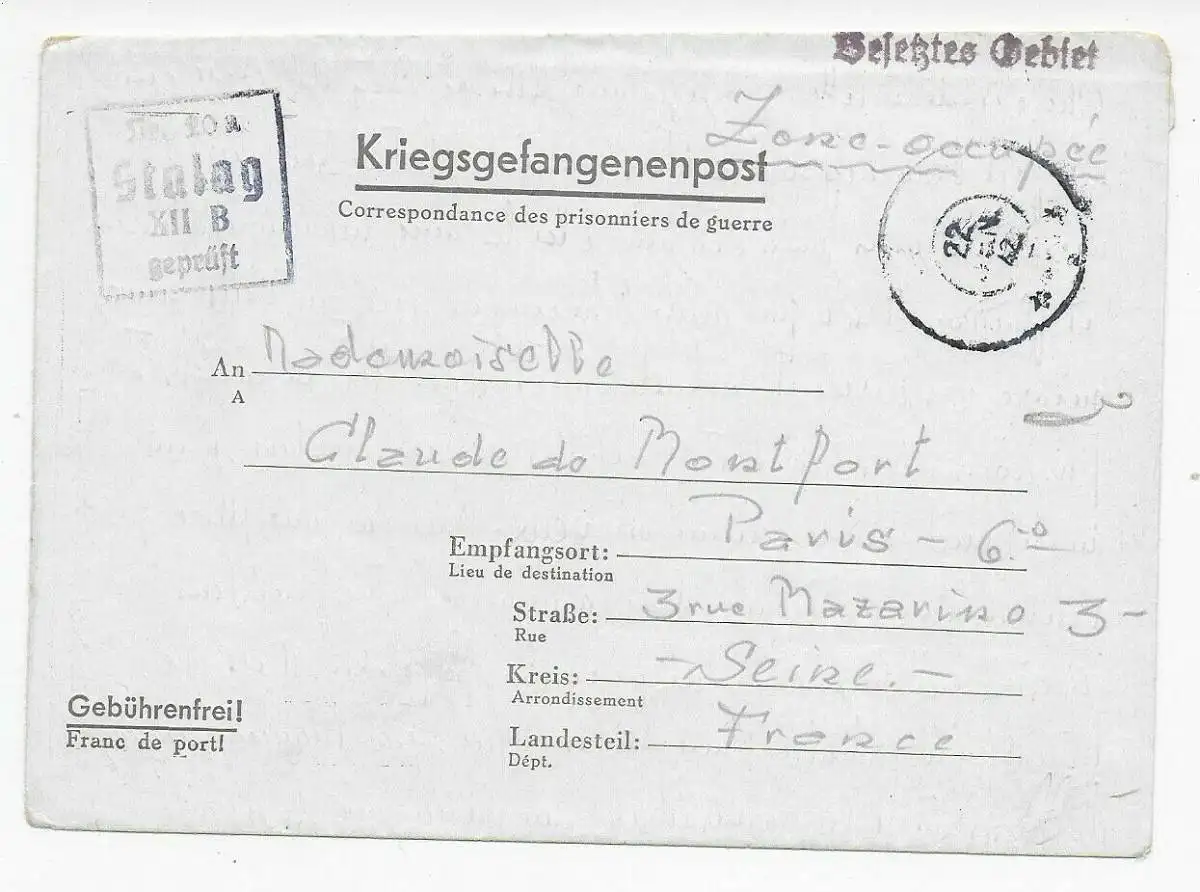 Stalag XIIB Commandeur de travail à Paris, 1942