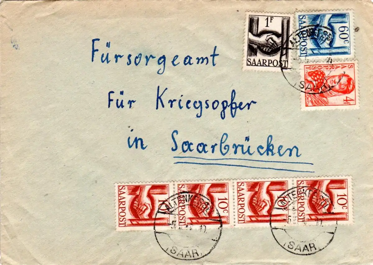 Saar 1948, 7 Marken auf portorichtigem Brief v. Altenkessel