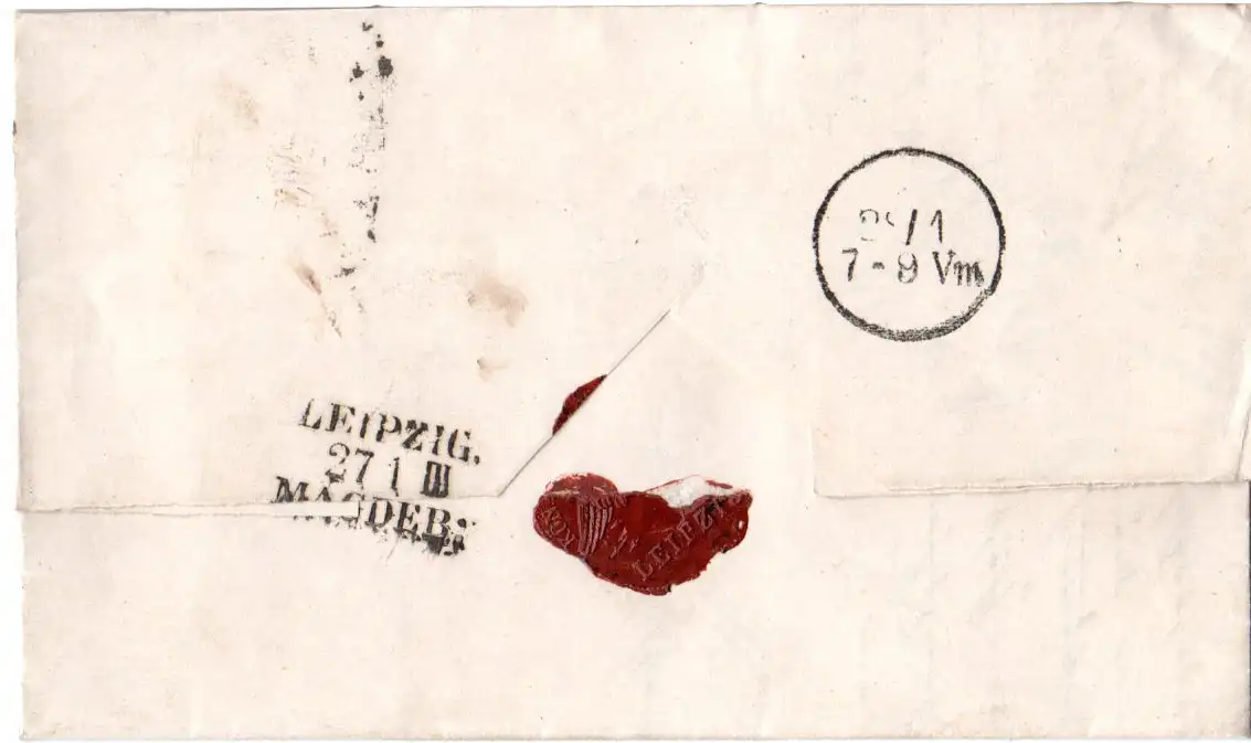 Sachsen 1857, K2 Leipzig auf Brief n. Berlin m. nicht anerkannter Portofreiheit
