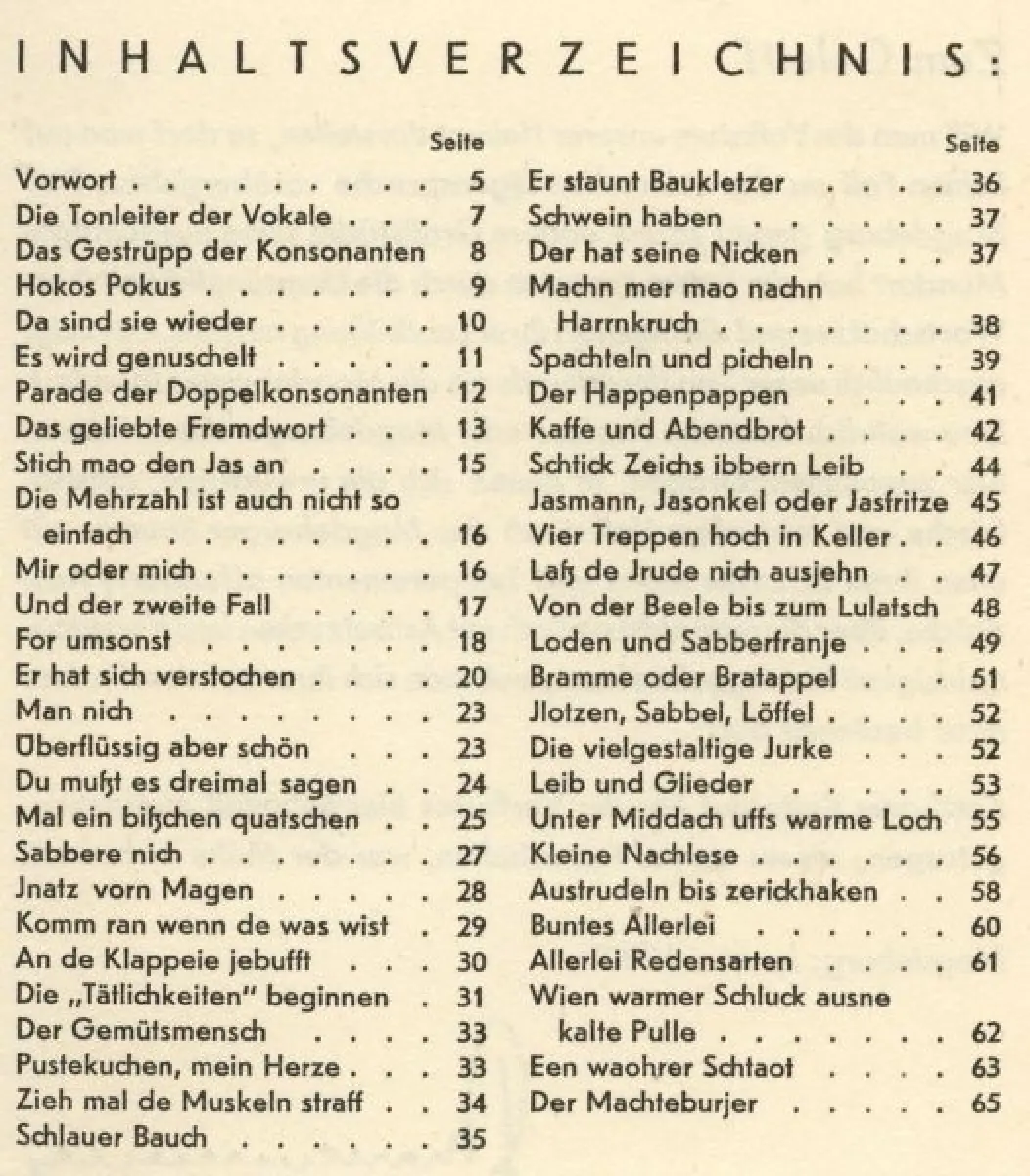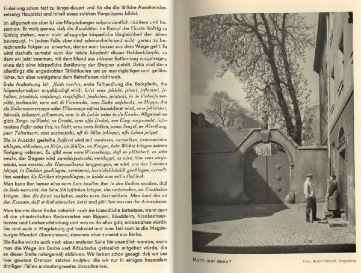 mit GESAMT 90 Seiten photografischen Abbildungen,Kleine Einführung in die Magdeburger Vokal und Lautlehre,die Magdeburger Mundart und ihre räumliche Verbreitung,Magdeburger Wörter Ausdrücke und Redensarten Aufklärung darüber was kann was bedeuten in der Magdeburger Sprache.Zudem kennt das Buch eine Menge lustige Geschichten und Begebenheiten von Magdeburger Typen und Orginalen.Auf jeden Fall ein unterhaltsames und überaus interessantes Heimatbuch nicht nur für den typischen Madgeburger mit vielen historischen Aufnahmen.