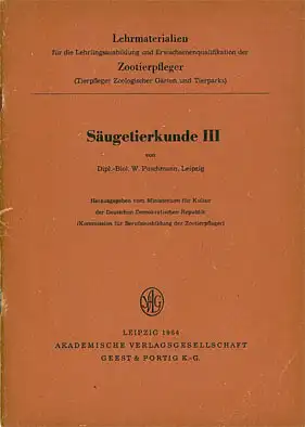 Titel: Säugetierkunde III. Lehrmaterialien f. d. Lehrlingsausbildung und Erwachsenenqualifikation d. Zootierpfleger