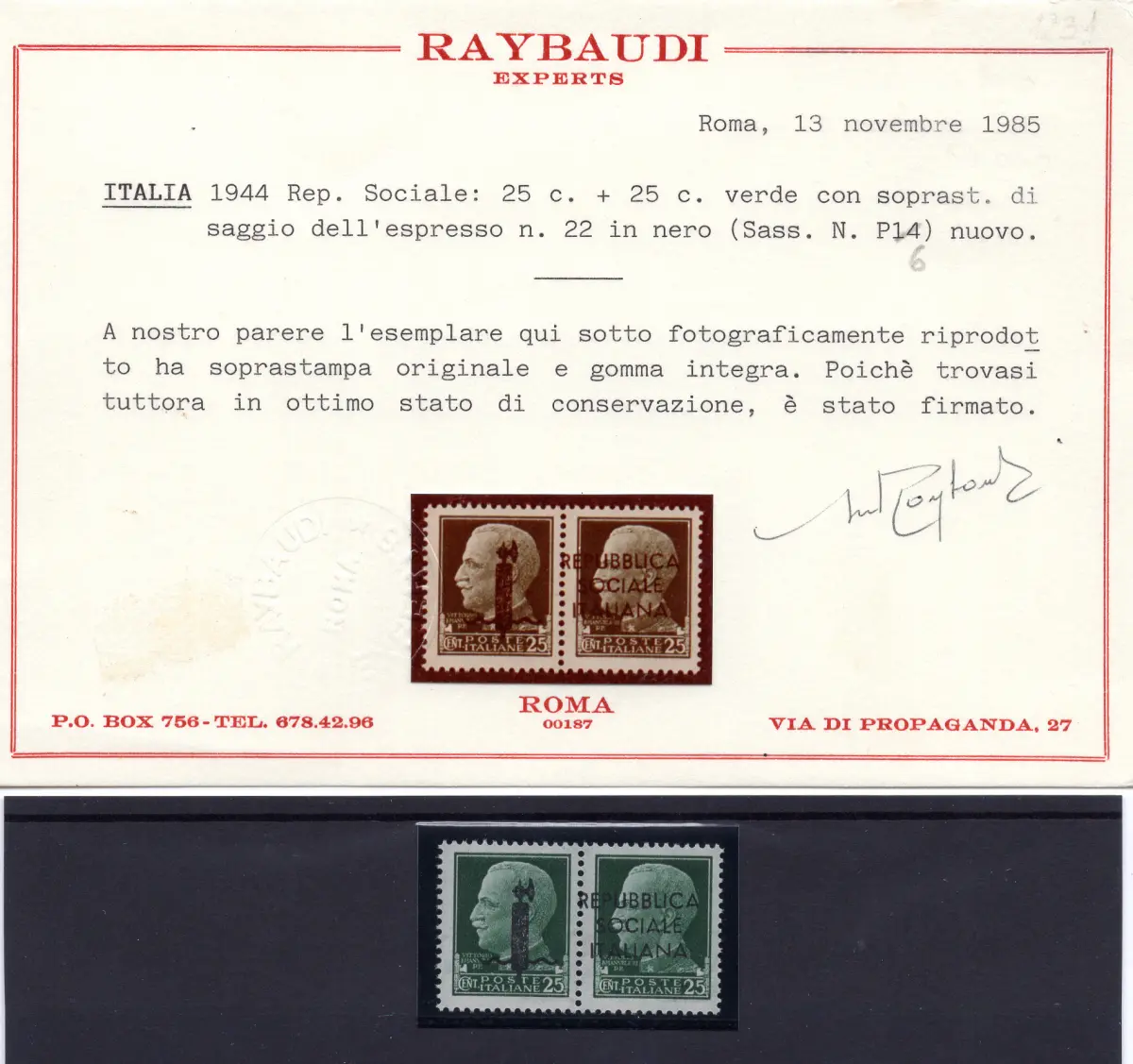 MNH - Vollgummi - - Essay Cent. 25 + 25 Tito Livio Nr. P 6 - Hervorragende Qualität und Zentrierung - Cert. Ray. - Kat. euro 450 Cod.380/182
