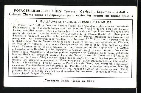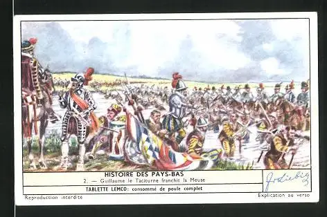 Sammelbild Liebig, Tablette Lemco, Histoire des Payd-Bas: 2. Guillaume le Taciturne franchit la Meuse