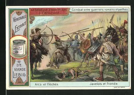 Sammelbild Liebig, Vèritable Extrait - Arcs et flèches, Javelots et fronde