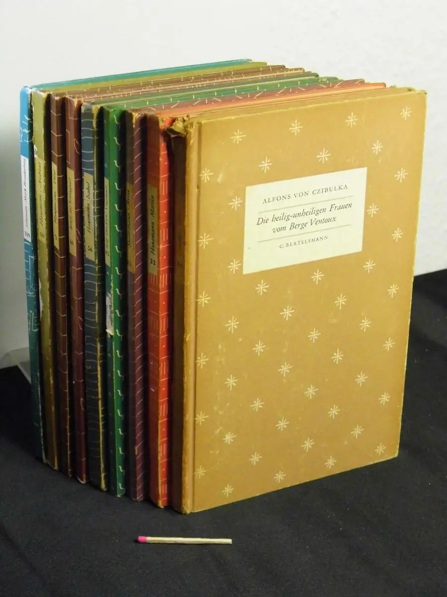 Freie Beschreibung: Reihe der Insel-Bücherei nachempfunden - enthalten: 16: Alfons von Czibulka: die Heilig-unheiligen Frauen vom Berge Ventoux + 32: Manfred Hausmann: Martin + 35: Hermann Sudermann: Die Reise nach Tilsit + 45: Rolf Dircksen: Das kleine Vogelbuch + 56: Manfred Hausmann: Isabel + 60: Letzte Briefe aus Stalingrad + 71: Gerhart Hauptmann: Bahnwärter Thiel + 100: Manfred Hausmann: Andreas + 109: Werner Schumann: Die Mark Brandenburg - Ein Bildbändchen - Kein Einzelbandverkauf über die Internetmarktplätze. - leicht bis deutlich berieben und bestoßen mit Randläsuren, leicht bis deutlich nachgedunkelt, Namenseinträge oder andere kleine Mängel möglich, 1 Rücken etwas beschädigt - intern598-1922 - Pappbände (Hardcover)