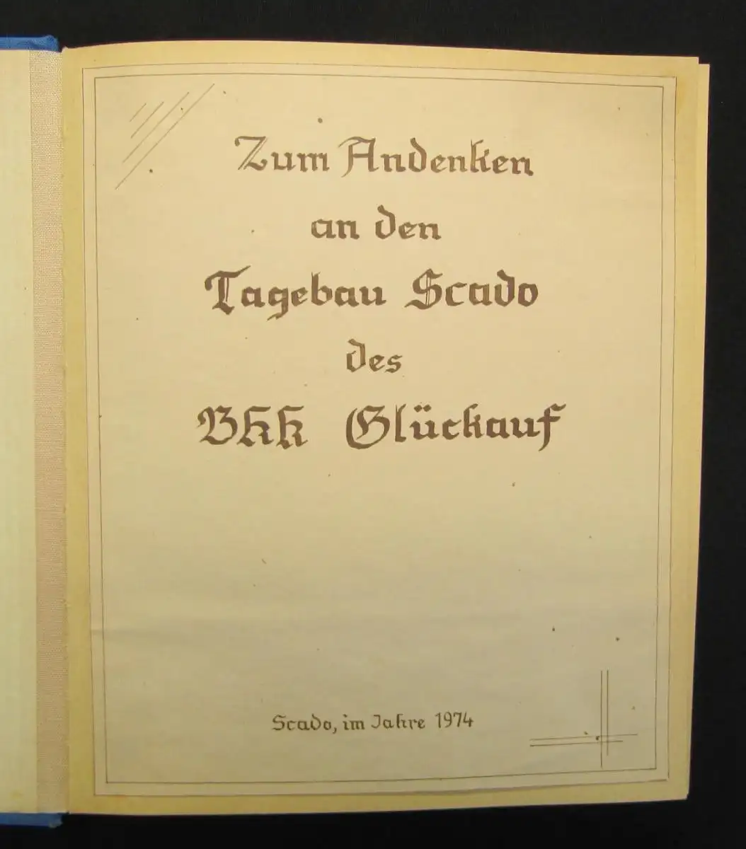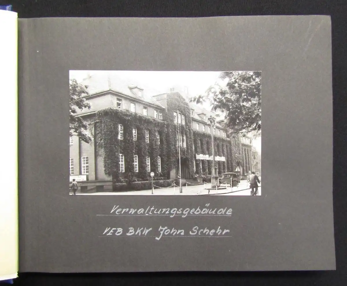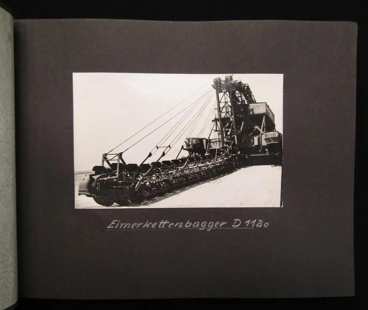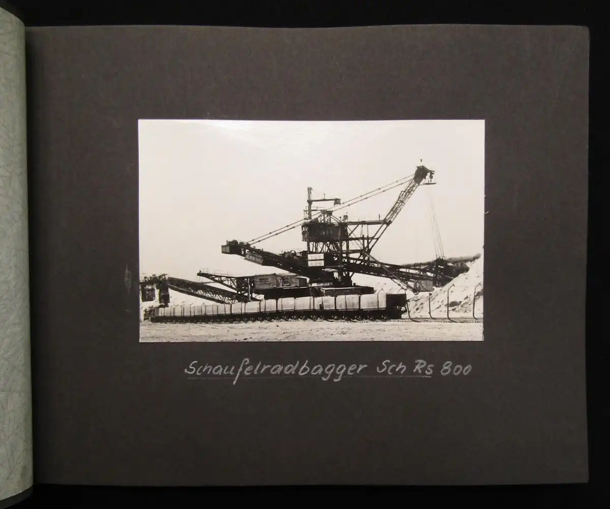 Sorgsam zusammengestellte Erinnerungs- bzw. Verabschiedungsalben, welche den Alltag in den Braunkohletagebauen des Lausitzer Reviers darstellen. Die Ansichten zeigen neben Verwaltungsgebäuden hauptsächlich die Technik wie Schaufelradbagger, Förderbrücken, Kumpel bei der Arbeit, Kleinbahnen, Verladebahnhöfe, Gleisarbeiten, Grabenfräsen bei der Anlage von Entwässerungsgräben, Pumpwerke u.v.m. Das BKK Glückauf war Nachfolger des BKW John Schehr und hatte seinen Hauptsitz in Knappenrode, der Verwaltungssitz war in Laubusch