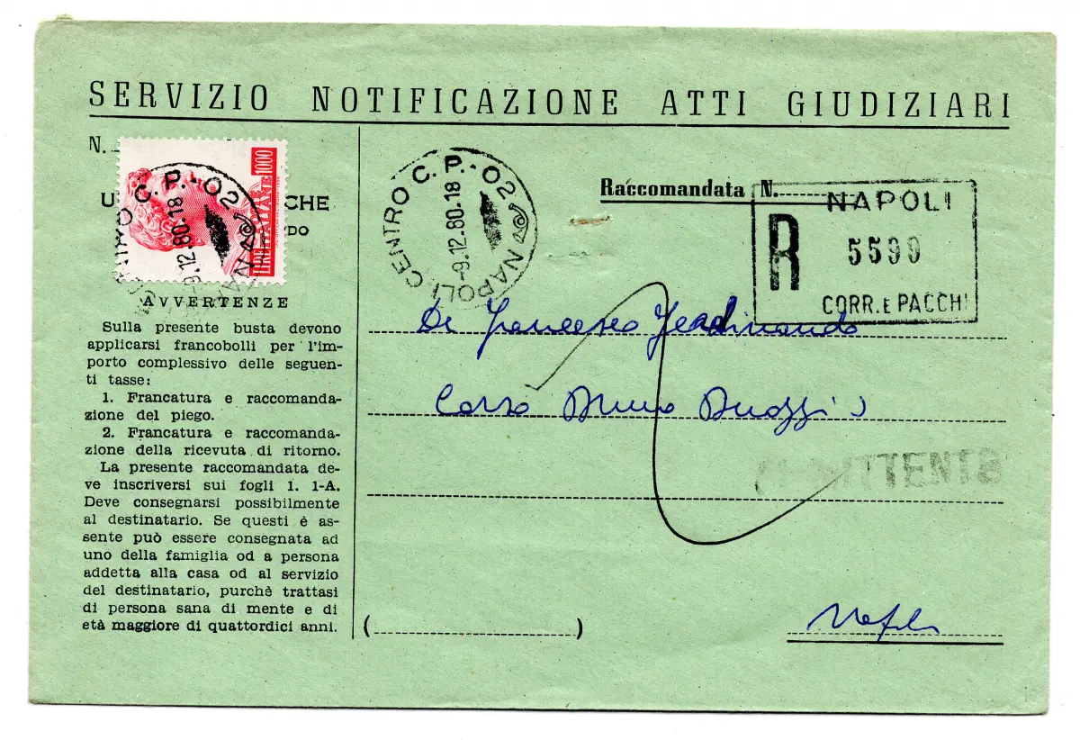 - San Giorgio Lire 1.000 fluoreszierend Nr. 811A isoliert auf Umschlag Racc. (Akte notifizieren) am 16.12.80 Nr. 596/20
