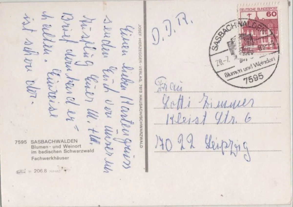 Postleitzahl:77887 (neu) / W 7595 (alt)