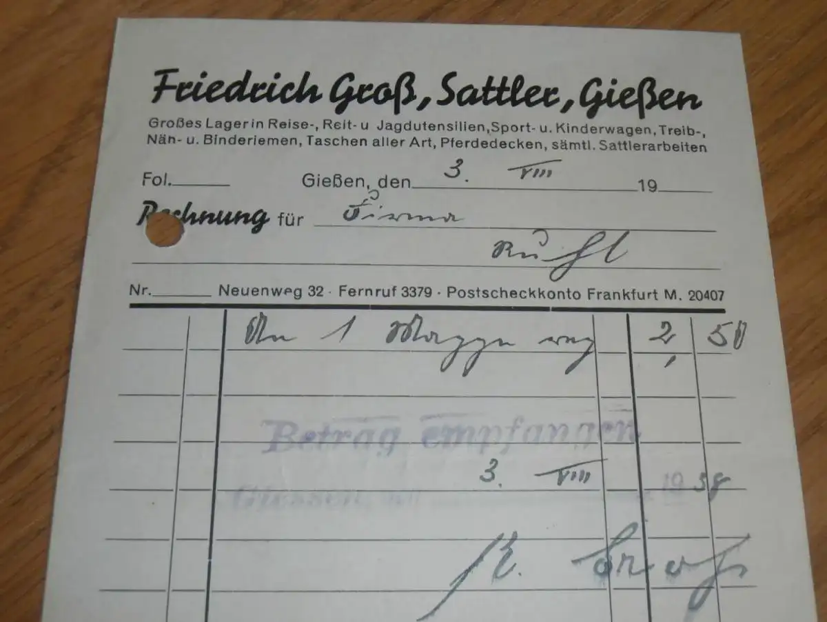 Sattler - Friedrich Groß in Gießen , 1938 , altes Dokument / Rechnung , Reklame / Werbung , Giessen !!