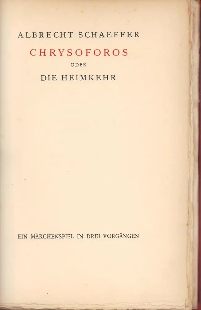 Schaeffer, Albrecht: Chrysoforos, oder Die Heimkehr. Ein Märchenspiel in drei Vorgängen.