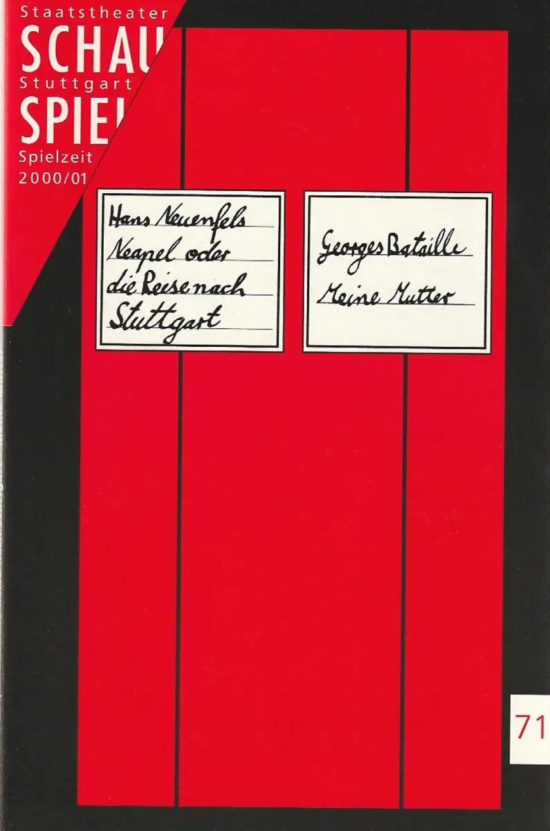 Titel: Programmheft Uraufführung Hans Neuenfels NEAPEL ODER DIE REISE NACH STUTTGART 21. April 2001 Spielzeit 2000 / 01 Nr. 71