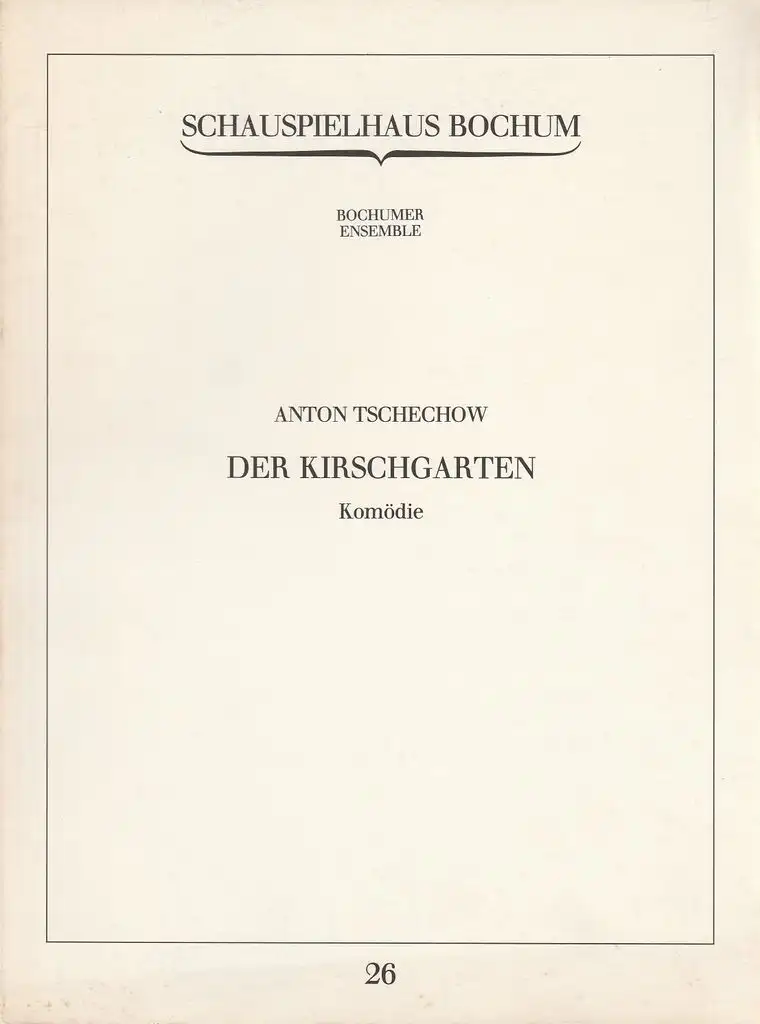 Schauspielhaus Bochum, Bochumer Ensemble: Programmheft Anton Tschechow DER KIRSCHGARTEN Premiere 3. Juli 1981 Spielzeit 1980 / 81 Programmbuch Nr. 26.