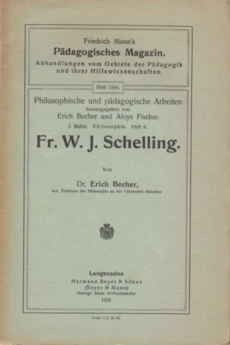 Schelling, Fr. W. J. - Erich Becher: Fr. W. J. Schelling ( = Friedrich Mann's Pädagogisches Magazin, Abhandlungen vom Gebiete der Pädagogik und ihrer Hilfswissenschaften, Heft 1184 / Philosophische und pädagogische Arbeiten, 1. Reihe: Philosophie, Heft 6
