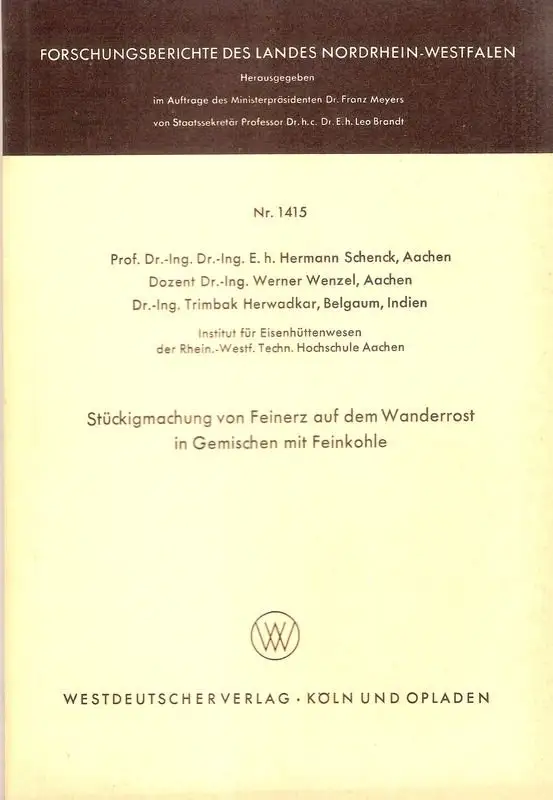 Schenck, Hermann / Wenzel, Werner / Herwadkar, Trimbak: Stückigmachung von Feinerz auf dem Wanderrost in Gemischen mit Feinkohle. (Nordrhein-Westfalen: Forschungsberichte des Landes Nordrhein-Westfalen ; Nr. 1415).
