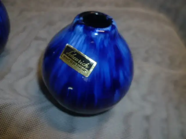 Scheurich Vintage Space Ära kleine blauweiße Keramik Vase , habe dito 2 Stück aus den 1960-70 im Pagoden Design , Etikett , Modell 233-7. Mit ca. 8 cm Höhe.