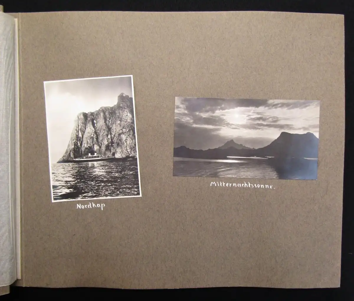 2 eindrucksvolle und schön gestaltete Fotoalben einer Reise mit Freunden nach dem Nordkap. Die Fotos zeigen Land und Leute, Häfen, Technik und auch Innenansichten des Schiffes "Monte Sarmiento". -