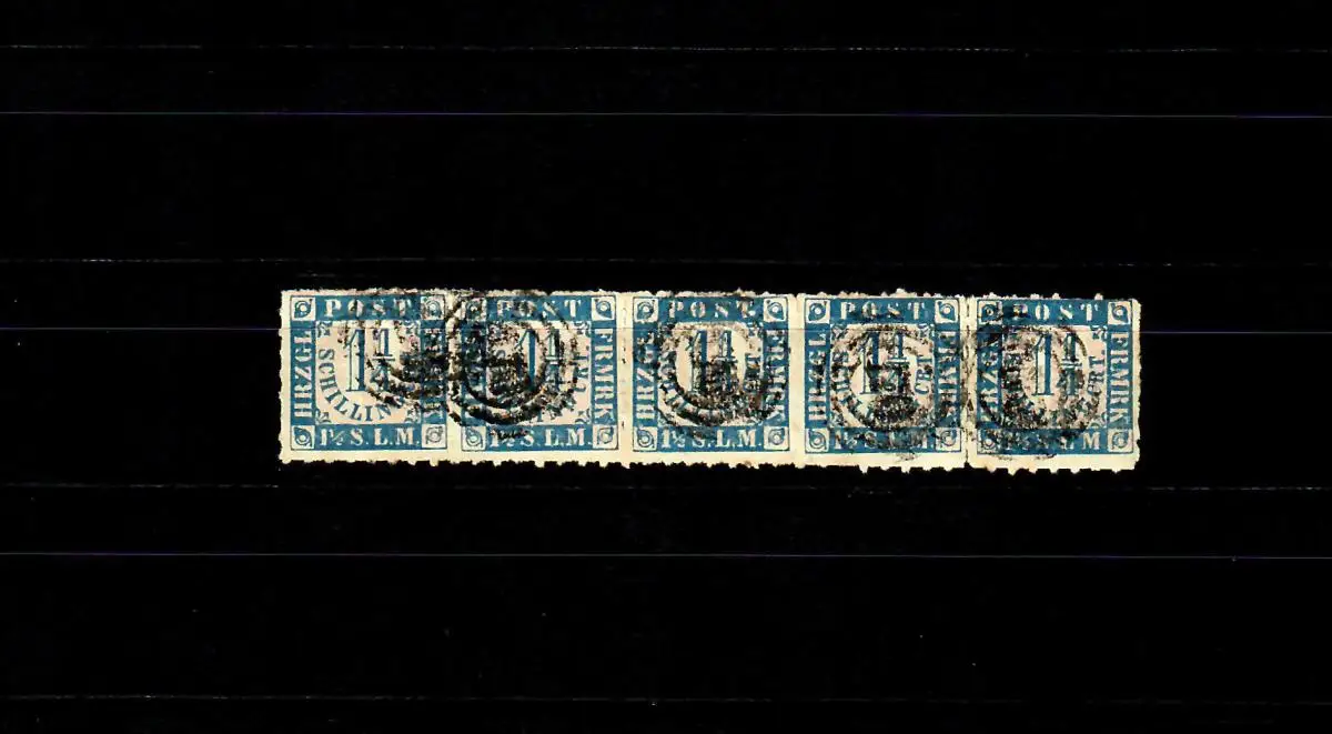 Schleswig-Holstein Mi n° 7, 5 bandes, arrière, soutenues par des rainures, rare