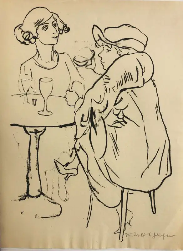 Schlichter, Rudolf (1890 in Calw - 1955 in München),, Im Café. Lithographie