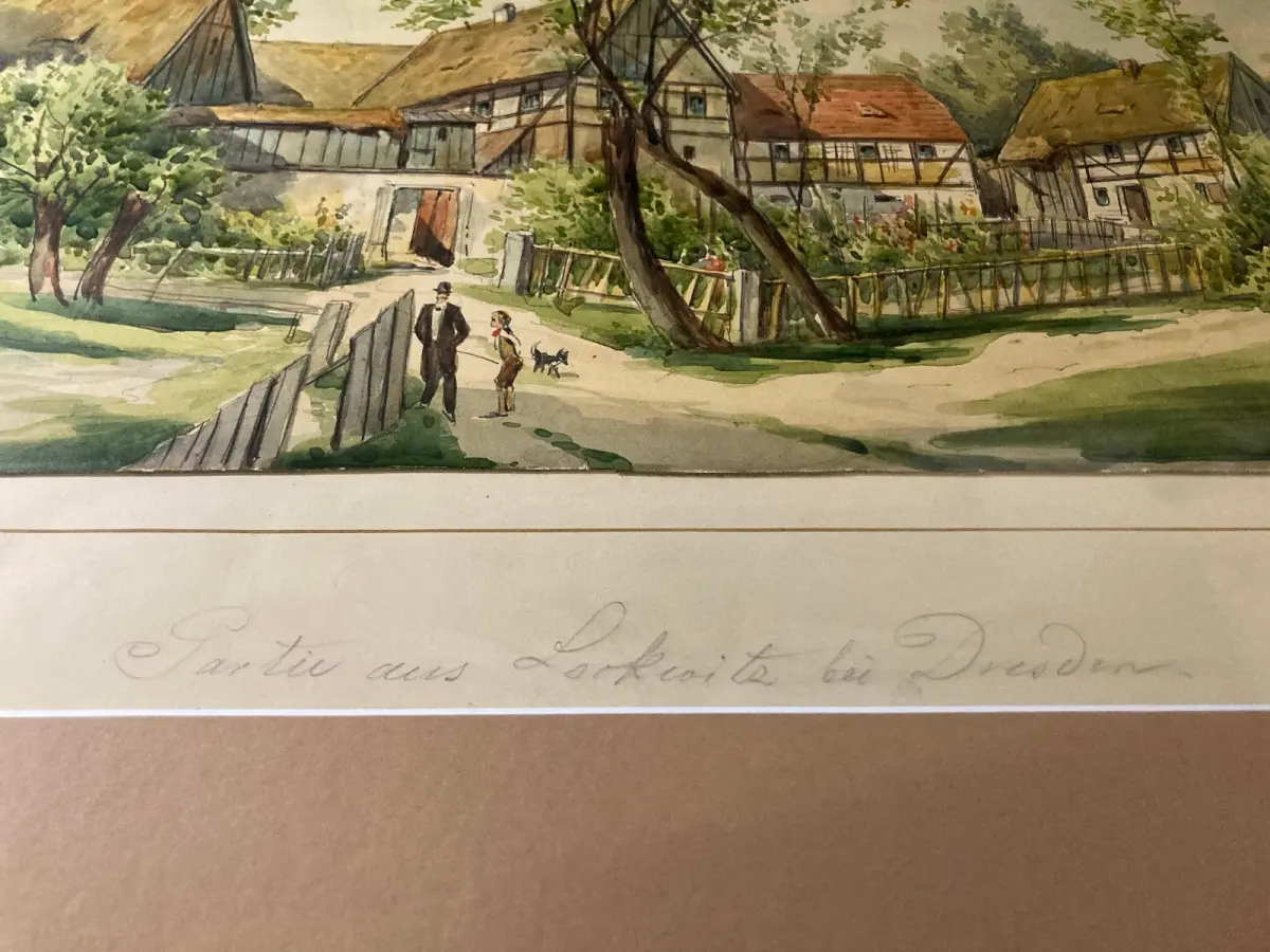 Passepartout außen sauber, Zeichnung in super Zustand, Pappe darunter minimal gebräunt