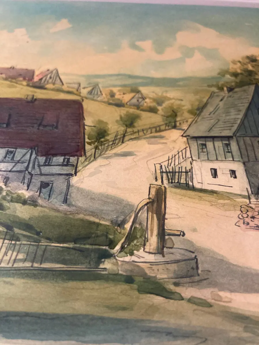 Passepartout außen sauber,verso mit Nummern am Rand versehen. Zeichnung in super Zustand, Pappe darunter stärker gebräunt
