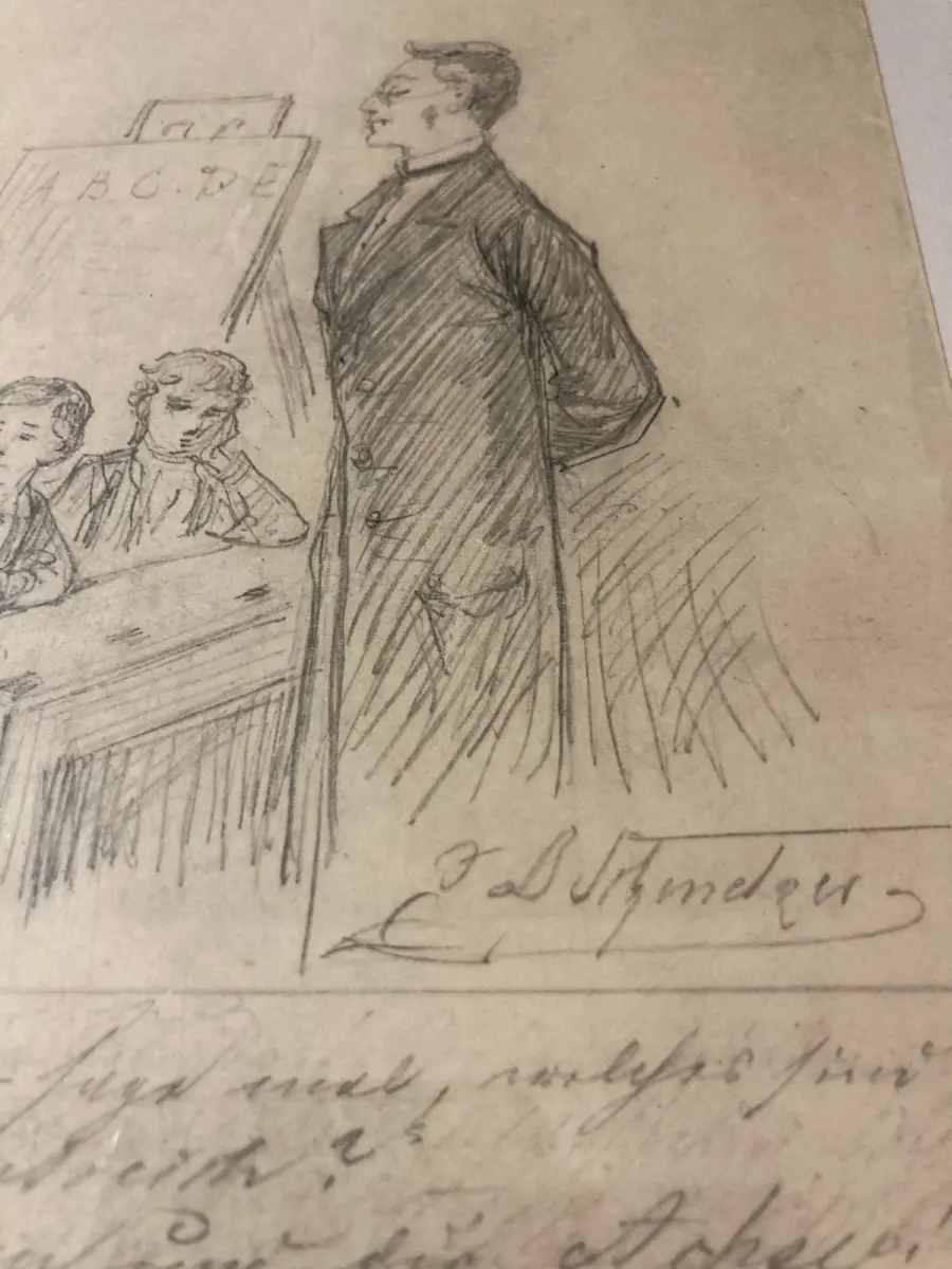 Johann, Bernhard Schmelzer 1833- am 26. Dezember in Annaberg als viertes Kind des Grenzzolleinnehmers in Kühnhaide- später Steuereinnehmer und Postverwalter- Christian Ehrenfried Schmelzer und seiner Ehefrau Chritiane Sophie Schmelzer, geb. Rossmann, geboren. Sein Vater starb früh, somit war die Familie unterstützungsbedürftig. 1848- 1860 Studium an der Dresdner Kunstakademie. Er war dort später Schüler von Julius Hübner in Historienmalerei. 1856 Erhielt er die"Kleine goldene Medaille"- eine hohe Auszeichnung- für sein Gemälde" Der Tod des Wilddiebs". ab 1860 Schüler bei Ludwig Richter in Dresden in Landschaftszeichnen. Auch starke Beeinflussung durch dessen Genrekleinkunst. um 1860-1892 Tätigkeit für mehrere Verlage verchiedener Städte als Illustrator von Kinderbüchern und Jugendzeitschriften. Außerdem Mitarbeit bei den "Dresdner Nachrichten" als bedeutender Humorist und Karikaturist. bis 1909 Aus Notlagen heraus, Ausführung von Werbeaufträgen was damals negativ bewertet wurde und sein Ansehen schädigte. 1909 am 10.September in Dresden an Armut gestorben