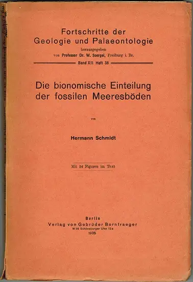 Schmidt, Hermann: Die bionomische Einteilung der fossilen Meeresböden. Mit 24 Figuren im Text. [= Fortschritte der Geologie und Palaeontologie Band XII Heft 38] Berlin, Verlag Gebrüder Borntraeger, 1935.