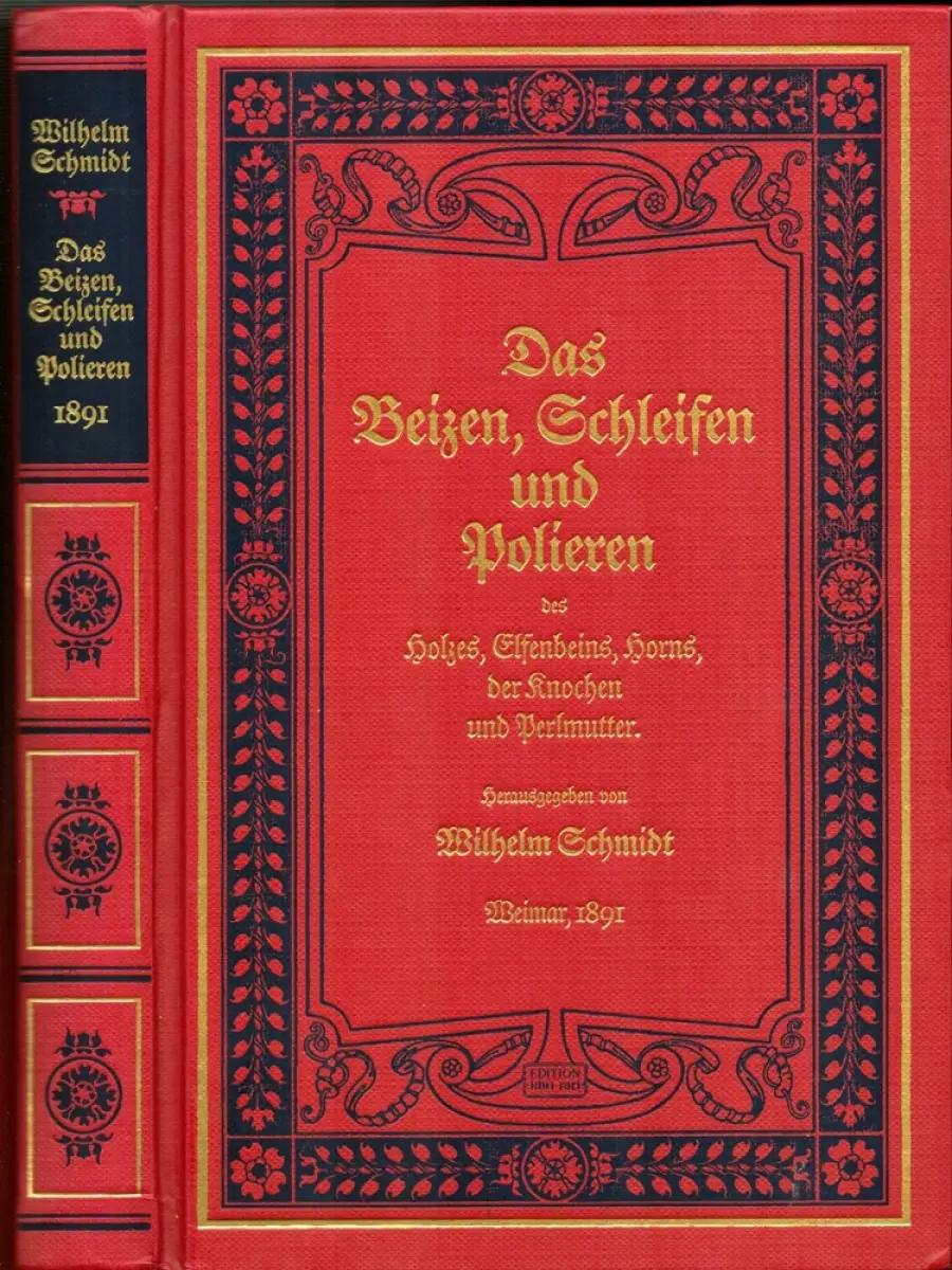 Schmidt, Wilhelm (Hrsg.): Das Beizen, Schleifen und Polieren des Holzes, Elfenbeins, Horns, der Knochen und Perlmutter, sowie deren Konservierung als technisches Material und die Verschönerung der daraus gefertigten Kunst- und Industriearbeiten: mit Benut