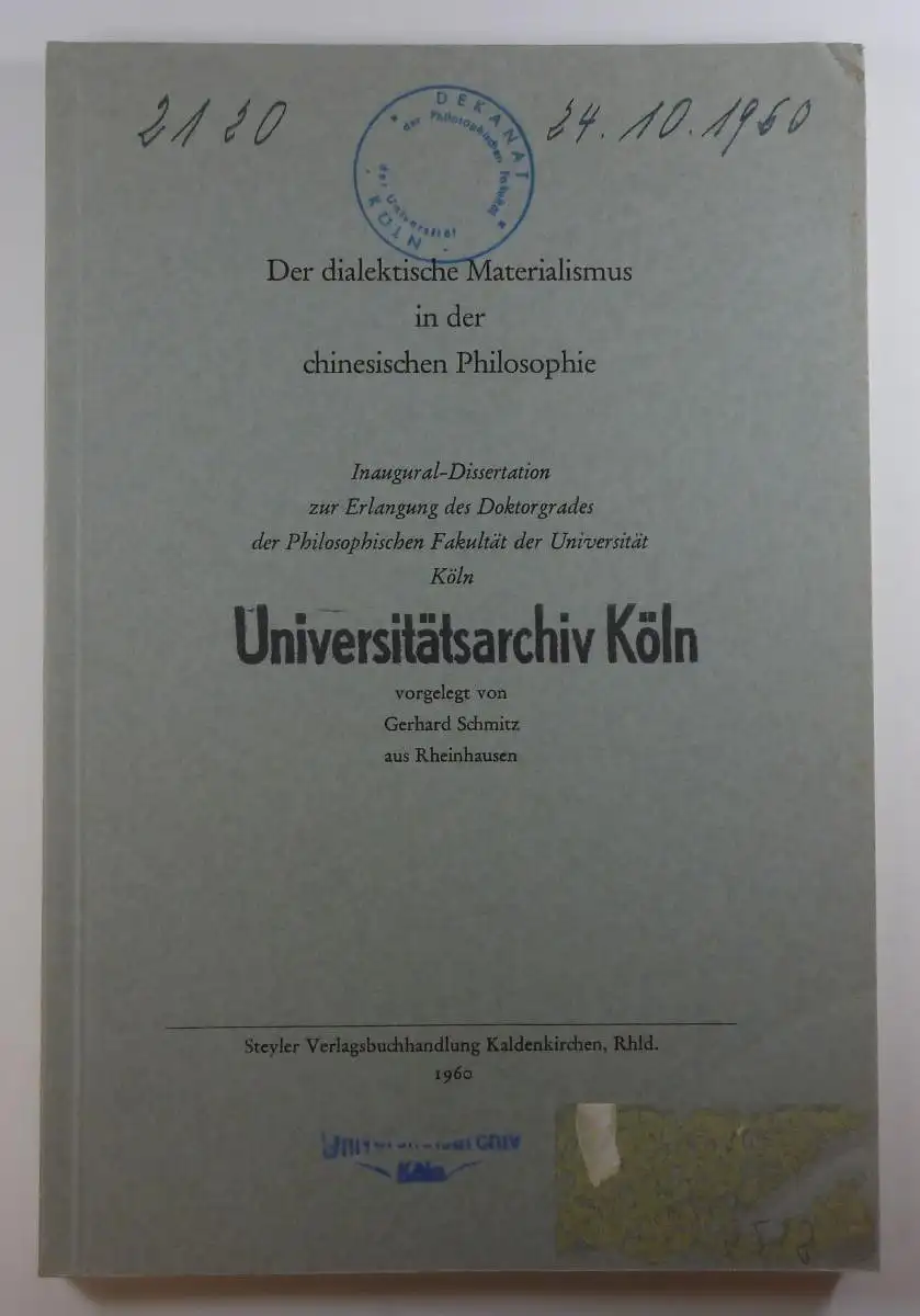 Schmitz, Gerhard: Der dialektische Materialismus in der chinesischen Philosophie. (Dissertation).