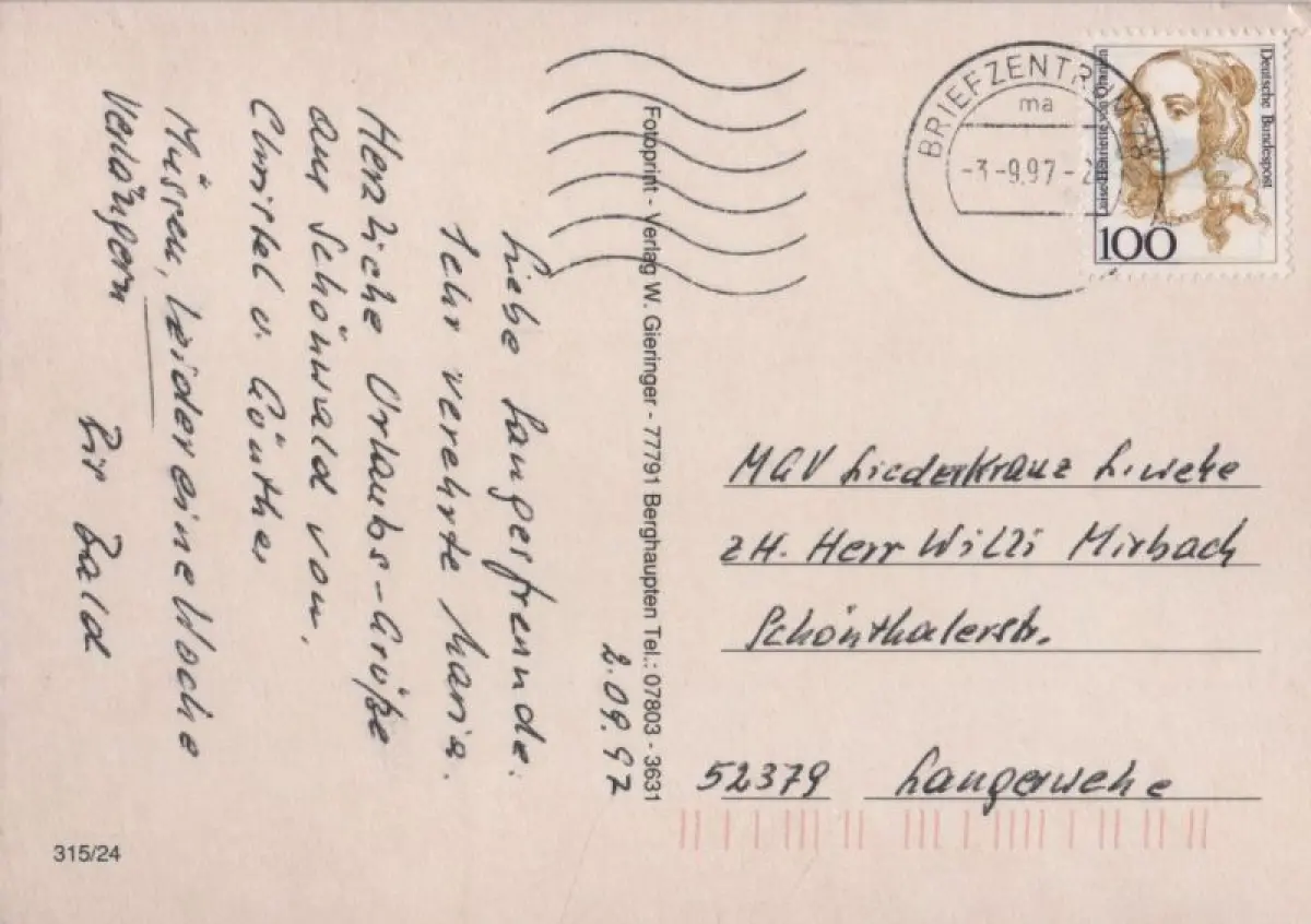 Postleitzahl:78141 (neu) / W 7741 (alt)